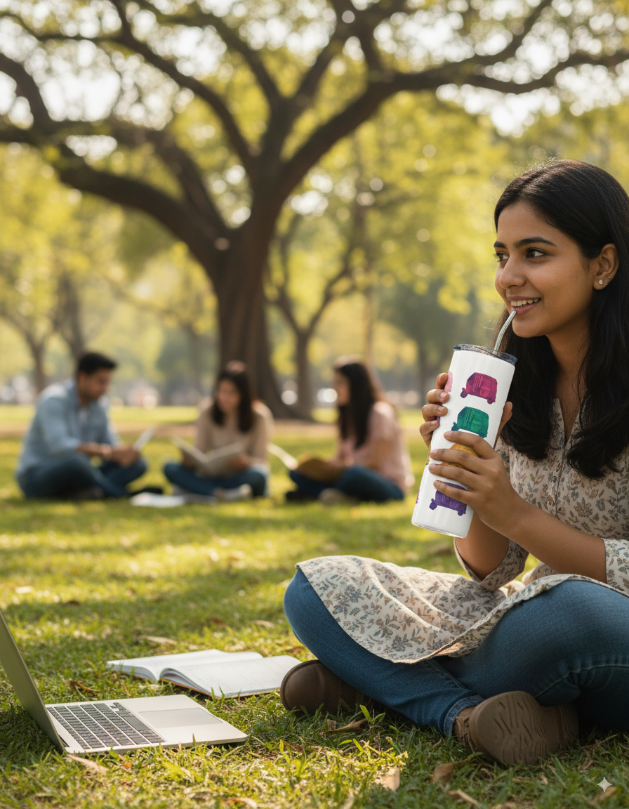 Auto rickshaw, but make it art. This double-wall insulated tumbler is your ultimate travel buddy—keeping your coffee hot, water cold, and your vibe unmatched. With Scribble Kart’s playful auto print, it’s not just a drinkware piece, it’s a conversation starter. Hydration, but make it desi-cool.